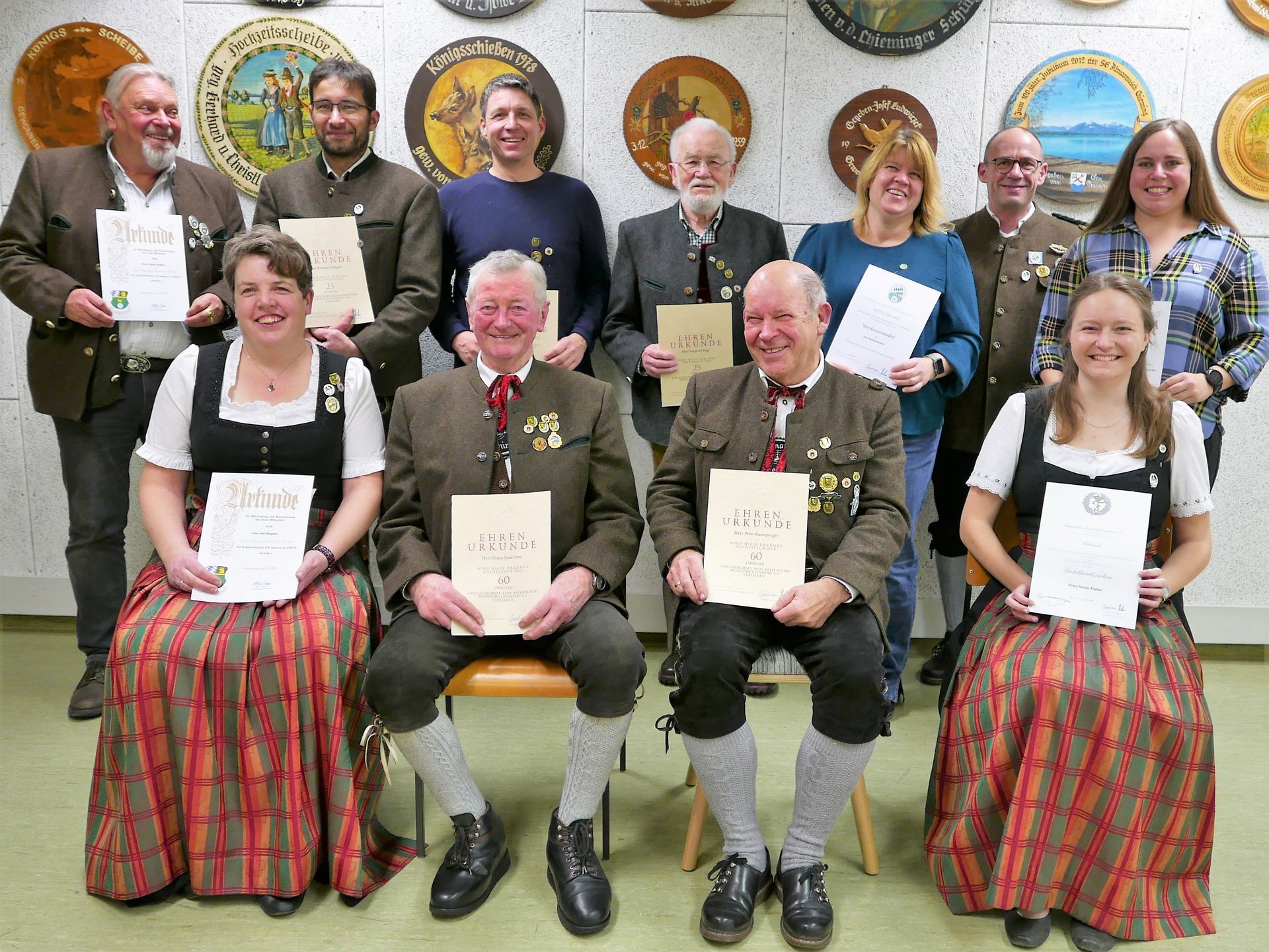 Gemeinsam mit Klaus Daiber wurden die Ehrenzeichen an verdiente und langjährige Mitglieder verliehen. Für 25 Jahre Irmi und Bernhard Wagner, Benno Auer, Siegfried Engl und Alois Lahner. Für 40 Jahre an Franz Seidl jr und Helmut Stumhofer jr. Für 60 Jahre an Franz Seidl sen. und Peter Ramsperger. Mit der silberne Gams des BSSB wurden ausgezeichnet Sandra Huber, Irmi Wagner, Philipp Gschwendner und Heinz Straßer.